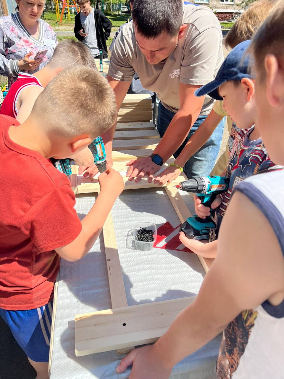 Ежегодно наша Компания проводит серию мероприятий в детских домах и реабилитационных центрах, где сотрудники проводят для ребят мастер-классы по навыкам работы инструментом – вместе красят, пилят, строгают, делают скворечники, облагораживают общественные пространства.