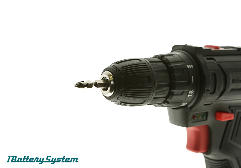 Прочный двухскоростной планетарный редуктор позволяет потребителю эффективно выполнять работы по сверлению в древесине, пластмассе и металле, Оптимальная регулировка силы крутящего момента, в 18 ступень + ступень сверления, позволяет устанавливать любой крепеж без его повреждения и вдавливания в материал.