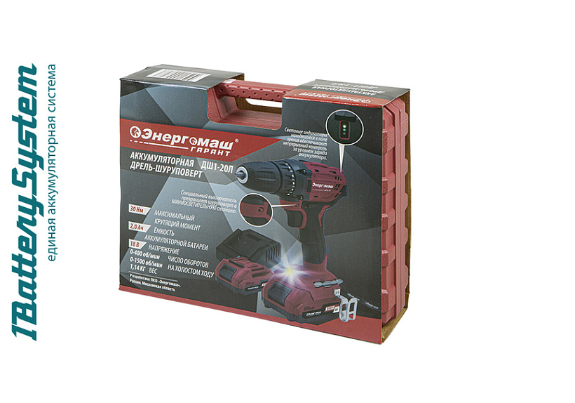 Аккумуляторный шуруповерт Энергомаш ГАРАНТ ДШ1-20Л 1BatterySystem
