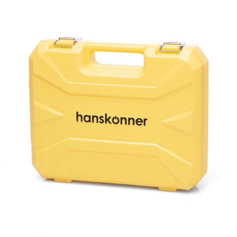 Hanskonner HCD1230R – универсальный аккумуляторный 12В двухскоростной шуруповерт. Модель обладает максимально сбалансированной компоновкой: небольшая толщина корпуса и рукояти позволяет эффективное использование в условиях с затрудненным доступом, а нейтральный центр тяжести, и обилие прорезиненных противоскользящих поверхностей способствуют надежному хвату, и лучшему контролю в процессе работы. Шуруповерт оснащен 12 В бесщеточным двигателем, характеризующимся на 30% лучшей производительностью в сравнении с коллекторными аналогами. Кроме того, бесщеточный двигатель отлично справляется с кратковременными перегрузками и не склонен к перегреву. Модель имеет две скорости: режим пониженных оборотов (0–400 об/мин) предназначен для работ с крепежом, режим повышенных оборотов (0–1300 об/мин) – для сверления отверстий в различных материалах. Наличие 20-ти ступенчатой муфты регулировки усилия позволяет производить максимально гибкую настройку необходимого момента затяжки. Предусмотрена функция блокировки вала, способствующая удобству смены оснастки одной рукой. К особенностям Hanskonner HCD1230R относятся эффективная LED-подсветка рабочей зоны, а также индикатор остаточного заряда аккумулятора PowerCheck. Дополнительному комфорту использования способствуют специальная зацепная скоба крепления на пояс, а также страховочный ремешок на руку. Шуруповерт штатно комплектуется парой литий-ионных (Li-ion) аккумуляторов, зарядным устройством с функцией быстрой зарядки (0–100%–50 мин), двухсторонними битами. Прочный пластиковый кейс гарантирует сохранность устройства и аксессуаров в процессе транспортировки.