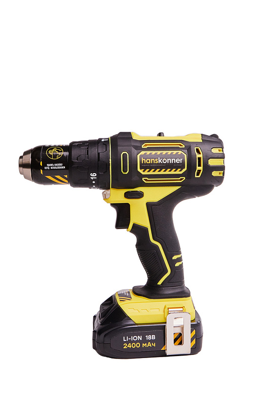 Hanskonner HCD1838RI – аккумуляторный 18 В, ударный, двухскоростной шуруповерт. Является одним из самых мощных и функциональных шуруповертов в своем классе и высокоэффективен не только при работах с крепежом, но и при сверлении в различных материалах, включая кирпич, камень и легкий бетон. Модель оснащена производительным 18 В электромотором и мощным планетарным механизмом High Torque Technology, благодаря чему, демонстрирует высокие показатели по крутящему моменту, достигающему значения в 55 Н м, что примерно в 1.5 больше, чем у аналогов. Имеет две скорости: режим пониженных оборотов (0 – 450 об/мин) предназначен для работ с крепежом, режим повышенных оборотов (0 – 1600 об/мин) – для сверления отверстий в различных материалах. За счет 16-ти ступенчатой муфты регулировки усилия, значение момента затяжки на валу шпинделя можно изменять в широком диапазоне. Важной особенностью Hanskonner HCD1838RI является ударный механизм, обеспечивающий возможность уверенно выполнять сверление отверстий в кирпичной кладке, штукатурке, керамике, легком бетоне. Установка на модели усиленного, цельнометаллического патрона с максимальным диаметром захвата 13 мм, позволяет значительно расширить набор используемой оснастки. Наличие щелчкового фиксатора ClickLock предохраняет патрон от самопроизвольного ослабления в процессе работы. К особенностям Hanskonner HCD1838RI стоит отнести функцию блокировки вала шпинделя, для удобной замены оснастки одной рукой, электронный тормоз выбега двигателя, гарантирующий мгновенную остановку патрона, а также эффективную линзованную LED-подсветку рабочей зоны. Для удобства пользователя, предусмотрена специальная зацепная скоба крепления на пояс. Шуруповерт штатно комплектуется парой литий-ионных (Li-ion) аккумуляторов емкостью 2.4 А ч, с индикацией остаточного заряда, импульсным зарядным устройством с функцией быстрой зарядки (0 – 100% – 60 мин), а также прочным пластиковым кейсом, обеспечивающим удобство хранения и транспортировки.