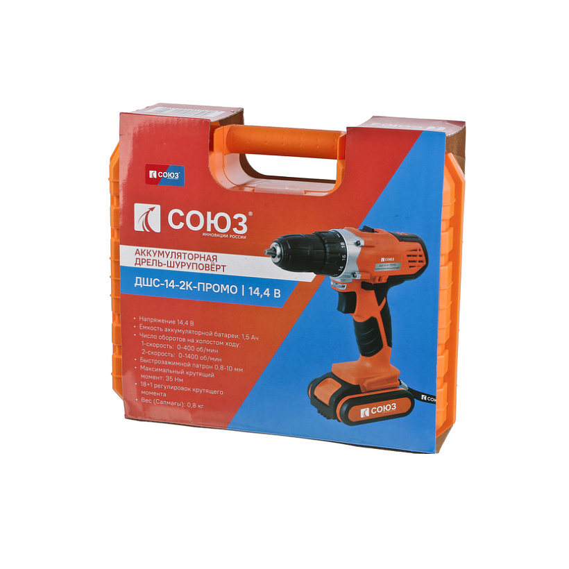 Аккумуляторный шуруповерт СОЮЗ ДШС-14-2К-ПРОМО