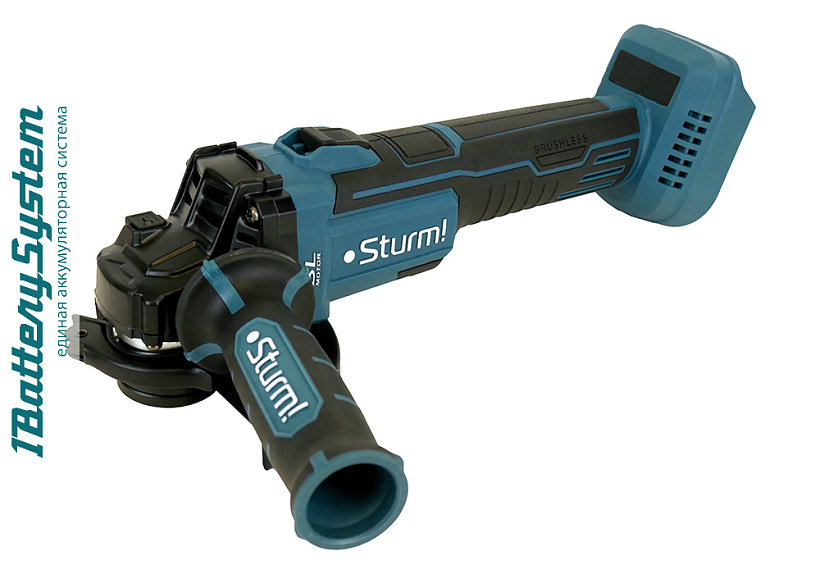 Аккумуляторная угловая шлифмашина является частью системы 1BatterySystem. 1BatterySystem - универсальная аккумуляторная система. Подходит ко всей линейке аккумуляторного инструмента Sturm!