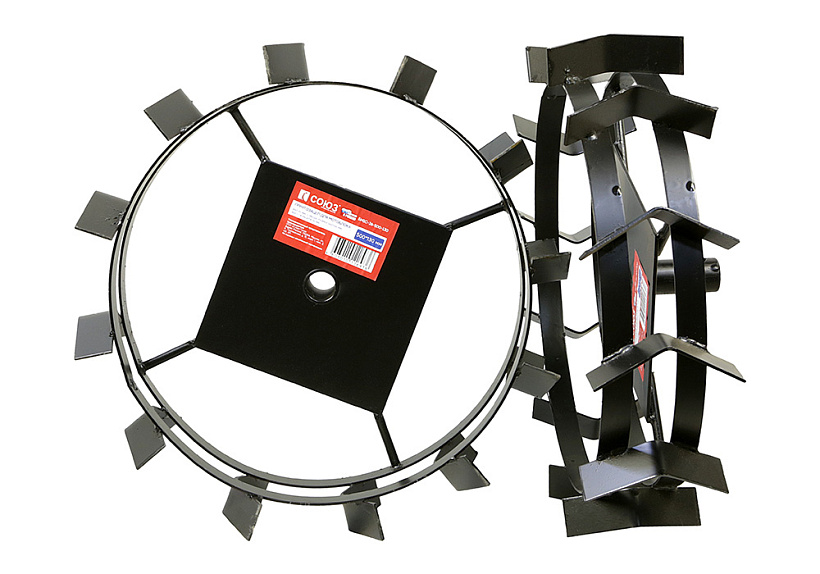 Грунтозацепы для мотоблока СОЮЗ БМ1С-26-500-130 используются в качестве замены резиновых колес и обеспечивают сцепление с грунтом при работе мотоблока. Колеса выполнены в виде нескольких полос металла со вваренными в середину листами металла. На такие колеса почва не налипает, выдавливаясь в пустоты между лентами. В результате сцепление с грунтом будет выше. Диаметр ступицы 30 мм, диаметр грунтозацепа 500 мм, ширина 130, количество ободов 2, высота зацепа 30мм.