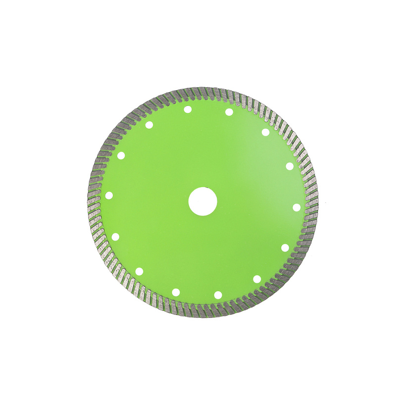 Диск алмазный TURBO с сегментированным алмазным слоем позволяет работать с широким спекторм строительных материалов, натуральными и искуственными камнями и способен прорезать тонкую арматуру в бетоне. Сухой рез. Охлаждение водой увеличивает ресурс диска. Self-sharpening technology -Технология самозаточки позволяет диску сохранять высокую скорость реза даже при длительной работе. Тело диска из стали марки 65Mn и метод горячей опрессовки при производстве алмазных дисков увеличивает его износостойкость и срок эксплуатации. Правильно подобранные компоненты металлической связки обеспечивают постепенный равномерный износ алмазного слоя.