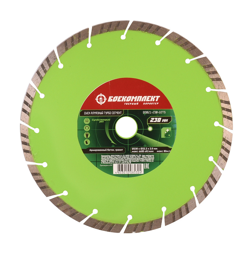 Алмазный диск 230x22,23 ТУРБО СЕГМЕНТ, сухой рез, БОЕКОМПЛЕКТ