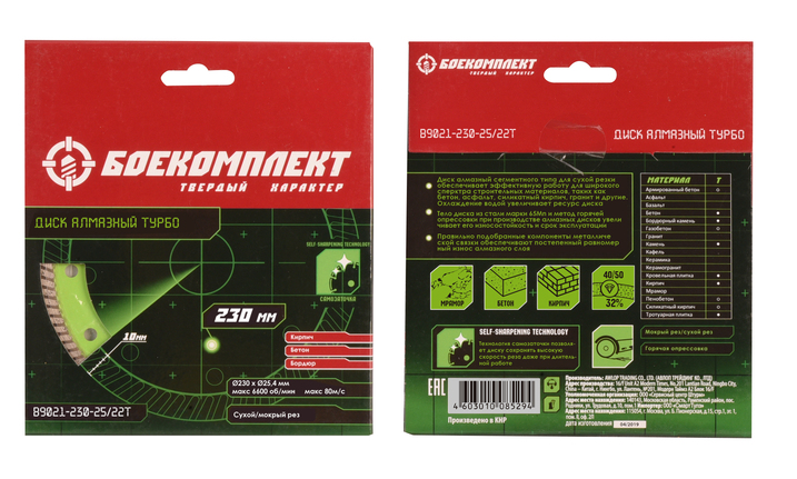 Алмазный диск 230x25,4x22,23 ТУРБО, сухой рез, БОЕКОМПЛЕКТ