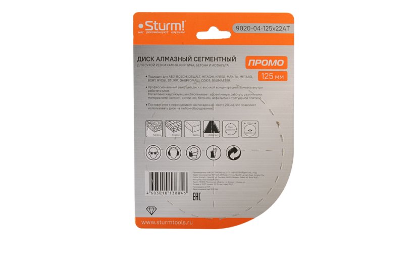 Алмазный диск, сухая резка, сегментный 125мм ПРОМО Sturm!