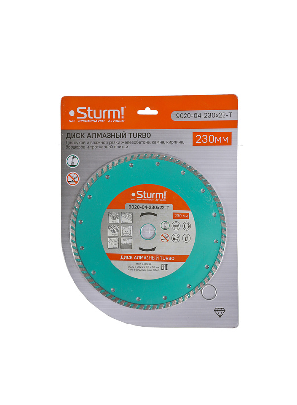 Алмазный диск, сухая резка, "Турбо" 230мм Sturm!