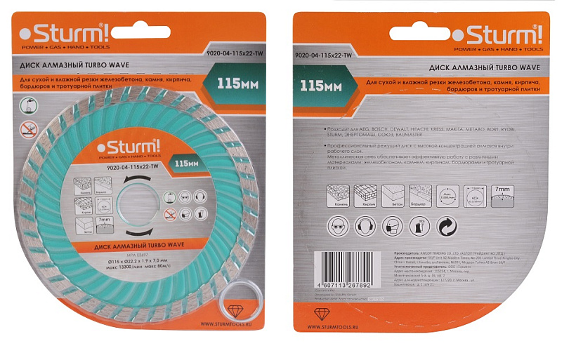 TURBO WAVE с усиленным телом позволяет работать со сложными материалами, такие как железобетон, камень, кирпич, бордюрами и тротуарной плиткой. Сухой и влажный рез.