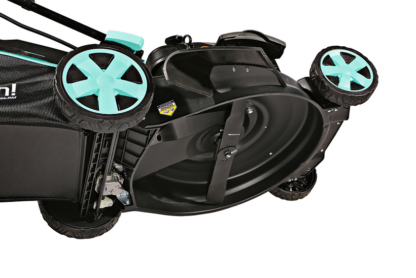Корпус газонокосилки выполнен из высокопрочной стали и покрыт порошковой краской. Он устойчив к механическим повреждениям и ржавчине, что обеспечивает длительный срок службы газонокосилки. Коннектор на корпусе деки позволяет подключить садовый шланг и сразу промыть режущий механизм и внутреннюю поверхность от остатков травы, пыли и грязи после работы.