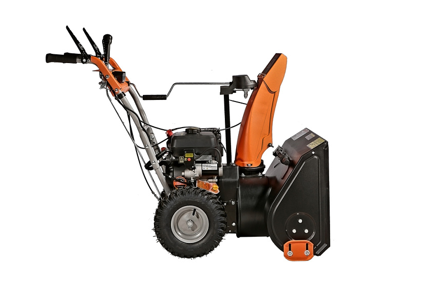 Sturm STG7461EL — универсальный самоходный бензиновый снегоуборщик. Предназначен для расчистки территорий средней и большой площади от снега различной плотности, как свежевыпавшего, так и слежавшегося. Модель оснащена надежным и неприхотливым четырехтактным двигателем KC (рабочий объем 196 см3, мощность 7 л.с.), специально адаптированным для зимней эксплуатации, а также многоступенчатой трансмиссией, значительно повышающей универсальность машины. Конструкцией предусмотрены четыре скорости движения вперед и одна назад. Низшая передача применяется при уборке плотно слежавшегося и мокрого снега, средние передачи — для работы со свежевыпавшим снегом, высшая передача — транспортный режим, предназначенный преимущественно для перемещения снегоуборщика. Важная особенность модели Sturm STG7461EL — наличие системы электрозапуска: благодаря встроенному электростартеру запуск снегоуборщика максимально удобен и прост. При необходимости, пользователь может также осуществлять запуск и с помощью ручного стартера. Высокая производительность машины обеспечивается не только мощным двигателем, но и продуманной конструкцией забора снега — этому способствует использование мощных агрессивных шнеков с большим профилем зуба, позволяющих легко справляться даже со слежавшимся снегом и настом, а также вместительного снегозагребного ковша, гарантирующего внушительную ширину прохода и возможность убирать сугробы до полуметра высотой. Снегоуборщик оснащен надежным металлическим выпускным желобом, с регулировкой по направлению выброса. Поворот желоба осуществляется дистанционно, посредством специального рычага на панели. Кроме того, предусмотрена возможность настройки угла выброса, благодаря которой регулируется необходимое расстояние выброса снежной массы. Максимальная дальность достигает 11 метров. Удобство эксплуатации в сумерках и темное время суток обеспечивает мощная LED-фара — в условиях короткого зимнего дня ее наличие является важной составляющей эффективной работы. Для лучшего сцепления с поверхностью модель комплектуется широкими пневматическими шинами с глубоким протектором.