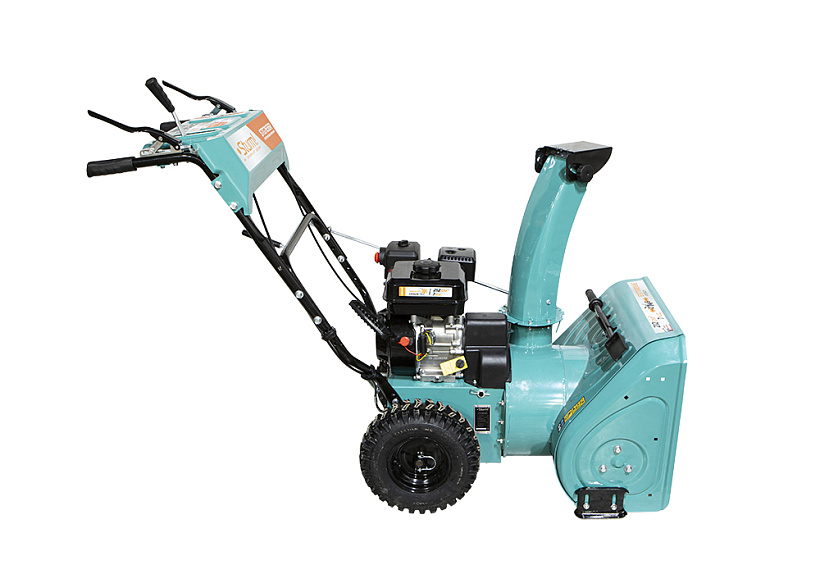 Зазубренный шнек первой ступени успешно измельчает слежавшийся снег и может справиться даже с настом толщиной до 2 см. Высокооборотистая вторая ступень снегоуборочного агрегата отбрасывает снег на расстояние до 12 м. Широкие колеса с развитым анти-снежным протектором позволяют уверенно двигаться по рыхлому снегу.