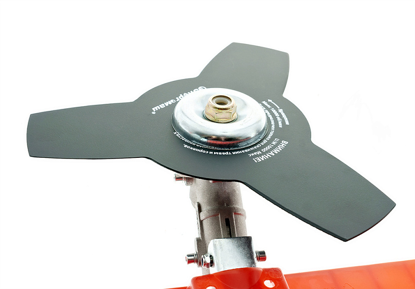 Универсальный защитный кожух можно использовать с ножом- косой для жестких зарослей, фрезой из упрочненной углеродистой стали для кустарника и тонких деревьев или кордовой головкой для травы. При этом замена лезвия производится просто и безопасно.