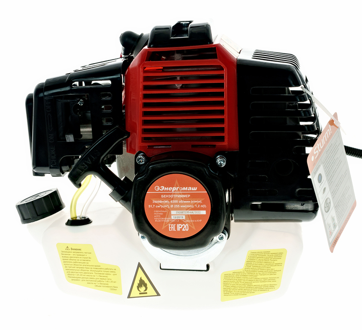 Топливный бак из прозрачного пластика облегчает контроль за уровнем топлива.