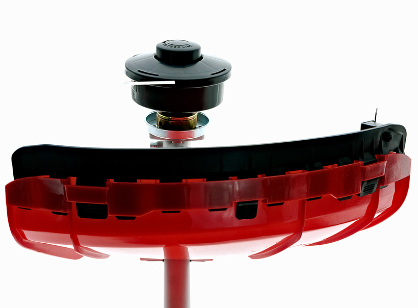 Универсальный защитный кожух можно использовать с ножом- косой для жестких зарослей, фрезой из упрочненной углеродистой стали для кустарника и тонких деревьев или кордовой головкой для травы. При этом замена лезвия производится просто и безопасно.