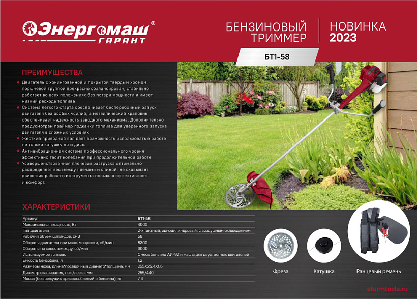 Триммер бензиновый Энергомаш ГАРАНТ БТ1-58