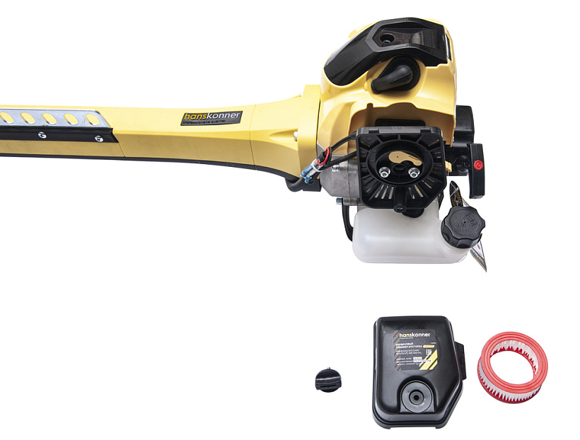 Бензиновый триммер Hanskonner – это незаменимый помощник на садовом участке, особенно на неровной поверхности или в труднодоступных местах, например, вдоль заборов, строений, вокруг кустов и деревьев. Без особых проблем он помогает справиться как с травой, так и с мелким кустарником.