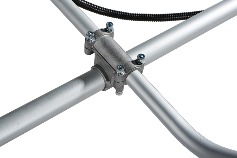• Вал повышенной прочности – обеспечивает передачу крутящего момента от двигателя к режущей оснастке, позволяя использовать разные типы оснастки, включая металлические ножи.