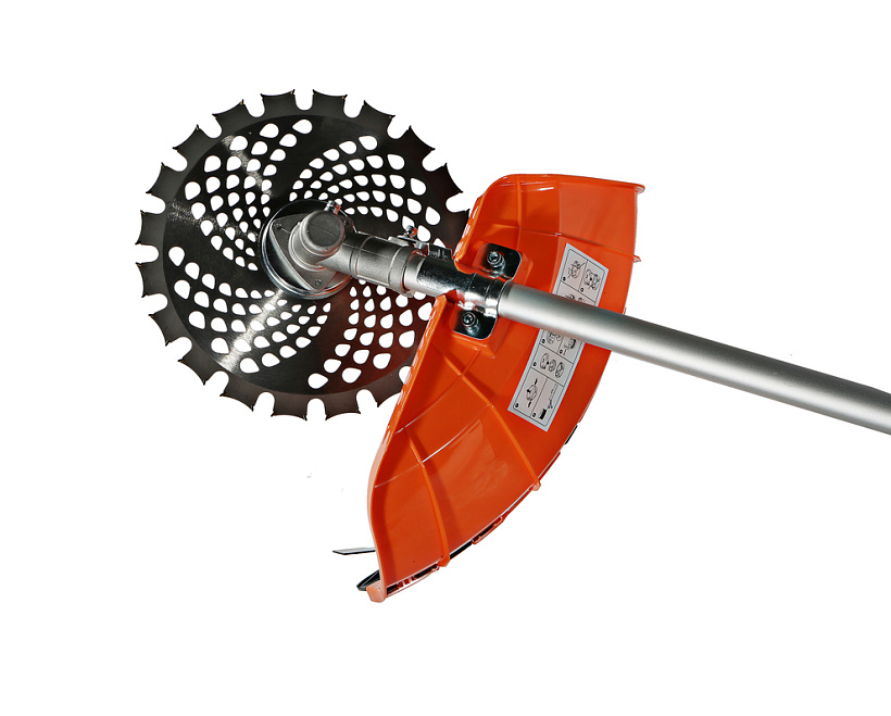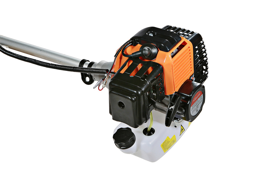 Универсальный защитный кожух подходит для использования с ножом-косой, которая облегчает срезание жестких зарослей, или кордовой головкой для травы. Заменить оснастку при этом можно просто и безопасно. Система легкого старта отвечает за бесперебойный запуск мотора без чрезмерного приложения усилий. Праймер подкачки топлива облегчает включение двигателя в сложных условиях. Наличие возвратного механизма стартера постоянно поддерживает инструмент в готовом к работе состоянии. Это обусловлено тем, что он автоматически приводит его в стартовое положение для быстрого последующего запуска.