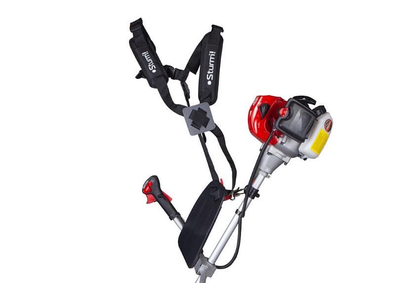 Sturm BT8952D — универсальная бензиновая коса для обработки приусадебных территорий больших площадей (более 1000 м2). Модель оснащена производительным бензиновым двухтактным двигателем рабочим объемом 52 см3, прямой неразъемной штангой с высокопрочным валом внутри, способным передавать значительный крутящий момент и мощным редуктором — все это позволяет эффективно использовать инструмент с различными типами режущей оснастки, включая не только косильные головки, но и металлические ножи и фрезы, а также культиваторные насадки. Ресурс инструмента и его безотказность гарантируют ряд конструктивных решений: двигатель Sturm BT8952D получил усиленную цилиндро-поршневую группу, коленвал повышенной прочности, а также карбюратор нового поколения, гарантирующий уверенный запуск и стабильность работы. Положительное влияние на общую надежность инструмента оказало применение фирменных высококачественных подшипников в редукторе, а также наличие направляющих антивибрационных втулок в штанге. Модель проста в обслуживании и эксплуатации. Легкость запуска обеспечивает механизм облегченного старта со специальной дополнительной пружиной, а также праймер, способствующий уверенному пуску бензокосы при различных температурных условиях, а также после длительных перерывов. Для оптимальной настройки бензокосы под конкретного пользователя конструкцией предусмотрена возможность продольной регулировки Т-образной рукояти, а также регулировка проушины крепления ремня. Инструмент имеет расширенную базовую комплектацию, куда помимо набора режущей оснастки (косильная головка, трехлопастной нож, фреза), входит ранцевый ременной подвес, позволяющий снизить нагрузку на оператора при длительной работе.