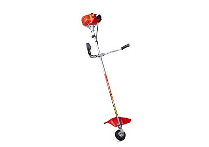 - Модель оснащена производительным бензиновым двухтактным двигателем рабочим объемом 52 см3, прямой неразъемной штангой с высокопрочным валом внутри, способным передавать значительный крутящий момент и мощным редуктором — все это позволяет эффективно использовать инструмент с различными типами режущей оснастки, включая не только косильные головки, но и металлические ножи и фрезы, а также культиваторные насадки.