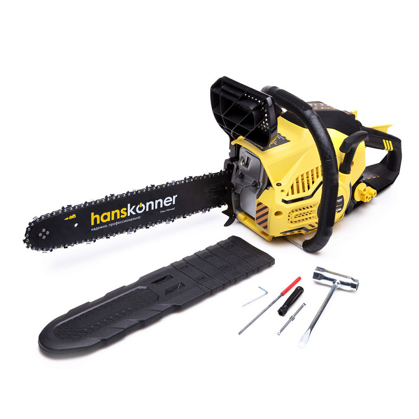 Бензопила Hanskonner HGC1416. Маневренная, износостойкая модель с быстрым разгоном отличается удобством в эксплуатации и подходит для выполнения работ в стесненных условиях.