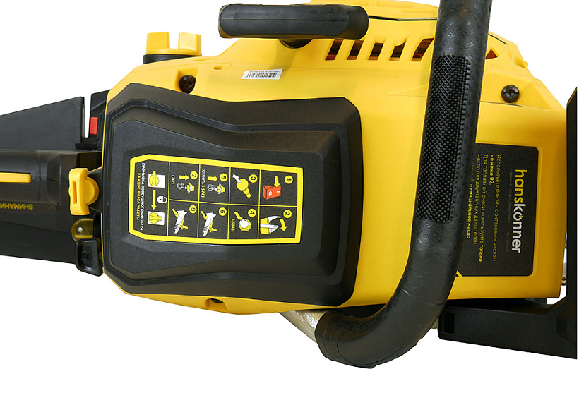 Hanskonner HGC2020 – надежная универсальная бензиновая пила – предназначена для широкого спектра работ: от расчистки лесных насаждений до эксплуатации на приусадебных территориях. Оснащена производительным двухтактным двигателем рабочим объемом 52 куб см (мощность 2.0 кВт / 2.7 л. с.) и пильной гарнитурой увеличенной размерности – 455 мм, что позволяет эффективно использовать инструмент для распиловки древесины различной толщины. В конструкции пилы применен ряд хорошо отработанных и показавших свою эффективность технических решений: хромоникелевое покрытие цилиндра снижает вероятность повреждения его стенок при недостаточной смазке или перегреве, кованый коленчатый вал имеет высокую прочность и хорошо противостоит интенсивным нагрузкам, улучшенный карбюратор и электронная система зажигания гарантируют стабильность работы при различных температурных условиях, высококачественный воздушный фильтр с большой площадью фильтрации защищает двигатель от попадания пыли и посторонних примесей. Также, на пиле установлен масляный насос с регулируемой подачей, что позволяет корректировать подачу масла к пильной гарнитуре в зависимости от условий работы. Снижению уровня вибрации способствует применение многоточечной антивибрационной системы. Инструмент обладает отличной эргономикой: рукояти имеют специальную насечку для удобства хвата, а их форма обеспечивает лучший контроль пилы при осуществлении горизонтальных пропилов и пропилов под углом. Модель проста в эксплуатации и не вызовет затруднений у пользователей, не обладающих достаточными навыками работы с бензопилами. Легкость запуска гарантируют система «легкого старта» со специальной дополнительной пружиной и праймер, обеспечивающий уверенный пуск инструмента в условиях низких температур и после длительных перерывов в эксплуатации. Важной особенностью является боковое расположение механизма натяжения цепи, за счет чего существенно упрощается ее регулировка и исключается риск повреждения рук пользователя от случайного контакта с зубьями цепи. Возможность безынструментального доступа к карбюратору, фильтрующему элементу и свече зажигания гарантирует удобство обслуживания пилы даже в самых неприспособленных условиях.