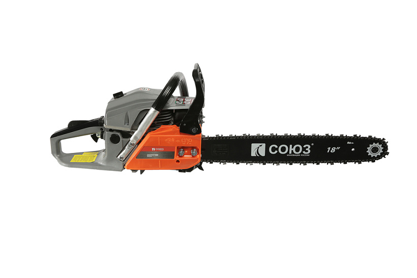 СОЮЗ ПТС-99452Т – надежная универсальная бензиновая пила бытового класса. Модель рассчитана на широкий спектр работ: от расчистки лесных насаждений и благоустройства парковых зон до эксплуатации на приусадебных территориях. Оснащена мощным и экономичным двухтактным двигателем рабочим объемом 45 куб см (мощность 2.35 кВт) и пильной гарнитурой увеличенной размерности – 455 мм, что позволяет эффективно использовать инструмент для распиловки древесины различной толщины. Благодаря нейтральному центру тяжести, инструмент отлично сбалансирован, хорошо лежит в руках и позволяет с легкостью выполнять распилы под разными углами. Модель проста в эксплуатации и не вызовет затруднений у пользователей, не обладающих достаточными навыками работы с бензопилами. Легкость запуска гарантируют система облегченного старта со специальной дополнительной пружиной и праймер, позволяющий уверенный пуск инструмента в условиях низких температур и после длительных перерывов в эксплуатации. Возможность безынструментального доступа к карбюратору, фильтрующему элементу и свече зажигания обеспечивает удобство обслуживания пилы даже в самых неприспособленных условиях.