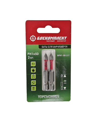 Биты PH1x50мм, торсионн., сталь S2, 2шт, БОЕКОМПЛЕКТ