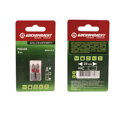 Биты PH2x25мм, сталь S2, 2шт, БОЕКОМПЛЕКТ