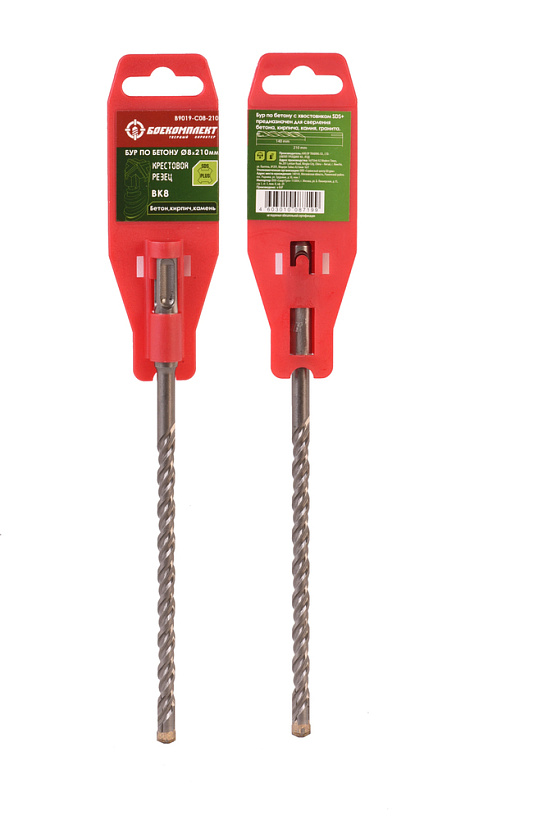 Бур SDS+ 08х210 крестовой резец ВК8 спираль S4 БОЕКОМПЛЕКТ