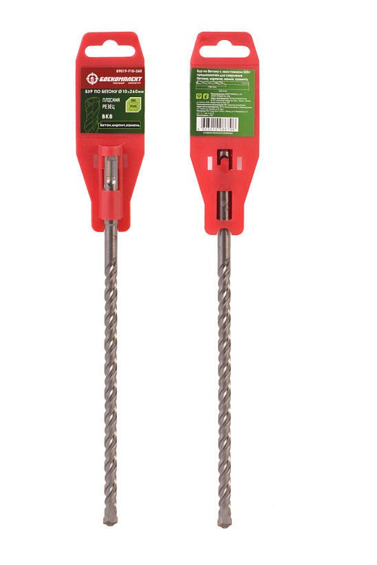 Бур SDS+ 10х260 плоский резец ВК8 спираль S4 БОЕКОМПЛЕКТ