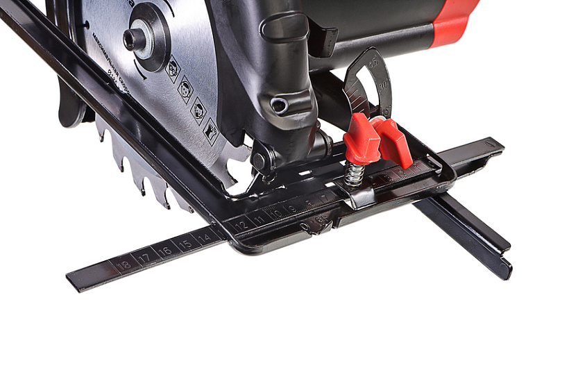 Безопасный сдвигающийся кожух и бесступенчатая регулировка глубины пропила с удобной шкалой и фиксацией без ключа облегчает работу оператора.