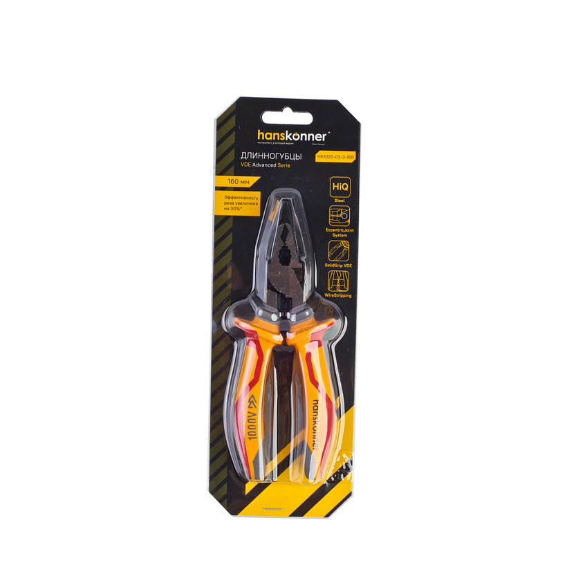 Длинногубцы 160мм, эксц. шарнир, стриппер, диэлектрические, hanskonner