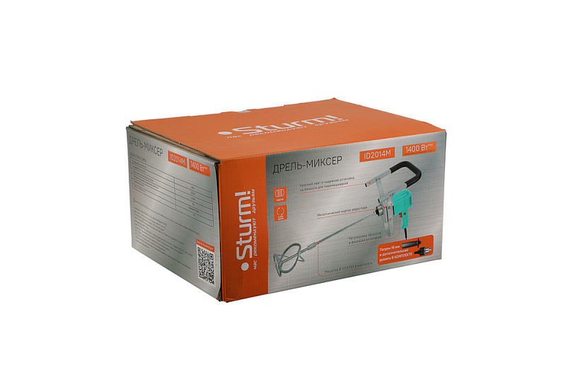 Электрический миксер Sturm! ID2014M —мощный и удобный электроинструмент для продуктивного перемешивания растворов и смесей любого типа: краски, грунтовки, сухой стяжки и цементные растворы с добавлением каменной крошки.