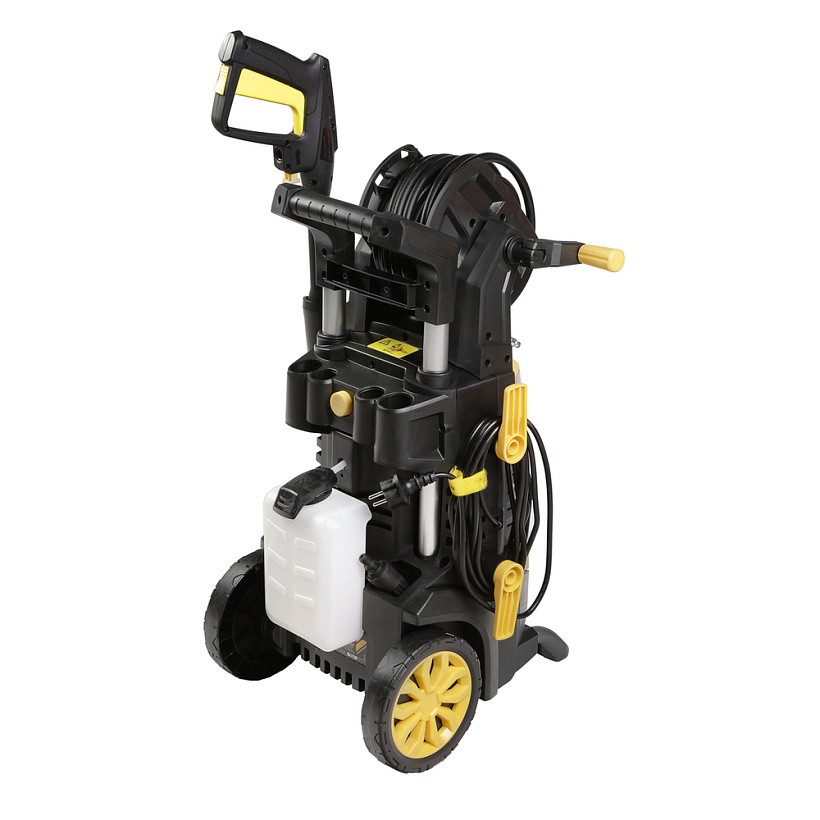 Hanskonner HPW9230I – универсальная производительная мойка высокого давления. Объединяет в себе компактность, отличную эргономику и широкие функциональные возможности. Главная особенность модели – наличие мощного индукционного бесщеточного двигателя, в сравнении с коллекторными аналогами обладающего лучшей износостойкостью и долговечностью, а также характеризующимся низким уровнем шума. Встроенная термозащита и автоматическая система с микровыключателем мгновенной остановки двигателя Total Stop гарантируют безопасную и энергосберегающую работу. Применение в конструкции трёхплунжерной алюминиевой помпы 3D Pump, позволяет мойке демонстрировать высокие показатели производительности (до 450 л/час), и одни из лучших, среди моек аналогичной мощности, показатели по выходному давлению (максимальное давление – 195 бар / рабочее давление – 130 бар) – все это дает возможность с максимальной эффективностью удалять даже самый стойкие загрязнения. Мойка оснащена функцией закачки и фильтрации воды "SelfPrime", обеспечивающей полноценную эксплуатацию устройства даже при отсутствии условий для подключения к стационарному водопроводу – в качестве источника воды можно использовать как водоемы, так и любые подручные емкости. Установленные на модели десятиметровый шланг высокого давления и пятиметровый сетевой кабель гарантируют значительную по площади рабочую зону: позволяют свободно мыть легковой автомобиль, очищать крыши дачных построек и другие объекты без необходимости передвигать мойку с места на место. Для защиты шланга от нежелательных перегибов модель имеет штатную катушку для его намотки, а также оснащена системой "TurnUnwind" для удобства хранения и возможности быстрого разматывания сетевого кабеля. Легкости подключения шланга и оснастки способствуют специальные быстросъемные соединения QuickConnect. Дополнительную функциональность обеспечивает установленный в задней части корпуса бачок для моющего средства с регулировкой подачи, благодаря которому пользователь получает возможность предварительной обработки моющим составом загрязненной области, не прибегая к использованию дополнительного оборудования. В штатную комплектацию мойки также включены внешний пеногенератор, для создания качественной густой пены, дополнительная роторная фреза "TurboNozzle" для работы с сильными загрязнениями, а также специальная защита от опрокидывания, предотвращающая случайное повреждение мойки в ходе использования. Благодаря большим транспортировочным колесам и выдвижной телескопической рукояти модель максимально удобна в транспортировке.