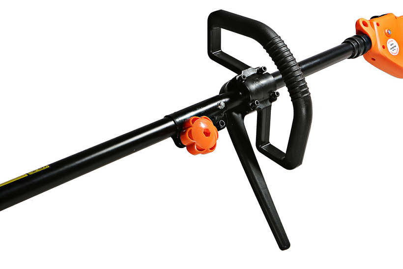 Инструмент максимально прост в использовании. Этому способствуют отличная эргономика и небольшой вес. Кроме того, в отличии от бензиновых аналогов, электрическая коса не требует предварительной подготовки (приготовление топливной смеси, заправка), работает без вредного выхлопа и с невысоким уровнем шума. Дополнительный комфорт при работе обеспечивает D-образная рукоять – она позволяет лучше контролировать инструмент и легче обходить преграды. Предусмотрена возможность ее продольной регулировки. Разборная двухсоставная штанга, обеспечивает повышенное удобство при транспортировке и хранении — в случае необходимости пользователь может максимально быстро и легко разобрать штангу, тем самым, сократить ее габаритную длину.