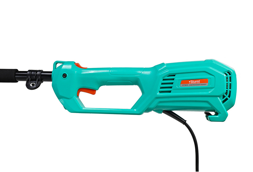 Sturm GT1800 – универсальная мощная электрическая коса для ухода за приусадебной территорией. Имеет компоновку с верхним расположением двигателя, что дает возможность применять ее для скашивания мокрой травы, так как исключается непосредственный контакт влаги с электрочастью. Кроме того, размещение мотора сверху обеспечивает инструменту отличную развесовку. Модель оснащена производительным 1.8 кВт мотором, развивающим максимальную частоту вращения режущей оснастки 7500 об / мин и позволяет уверенно использовать при работе режущую леску максимальным диаметром до 2.5 мм. Благодаря наличию стального приводного вала крутящий момент от двигателя к редуктору передается практически без потерь, что позволяет уверенно использовать не только стандартные косильные катушки, но и металлические трехлопастные ножи для скашивания жесткой, перезрелой травы и бурьяна. Инструмент максимально прост в использовании. Этому способствуют отличная эргономика и небольшой вес. Кроме того, в отличии от бензиновых аналогов, электрическая коса не требует предварительной подготовки (приготовление топливной смеси, заправка), работает без вредного выхлопа и с невысоким уровнем шума. Дополнительный комфорт при работе обеспечивает D-образная рукоять ¬– она позволяет лучше контролировать инструмент и легче обходить преграды. Предусмотрена возможность ее продольной регулировки. Для защиты пользователя от возможного случайного запуска инструмента, на корпусе установлена клавиша-фиксатор, блокирующая кнопку пуска – запуск возможен лишь после ее предварительного нажатия. Еще один элемент безопасности – специальный зацепной крюк в нижней части корпуса, предназначенный для надежной фиксации сетевого удлинителя к косе, чтобы в случае необходимости быстро отключить инструмент от электросети. В штатную комплектацию модели Sturm GT1800 входят катушка с леской, трехлопастной режущий нож, наплечный ремень и набор аксессуаров для сборки.