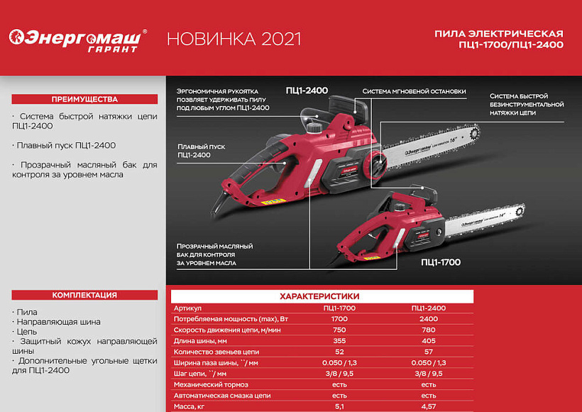 Цепная пила электрическая Энергомаш ГАРАНТ ПЦ1-2400
