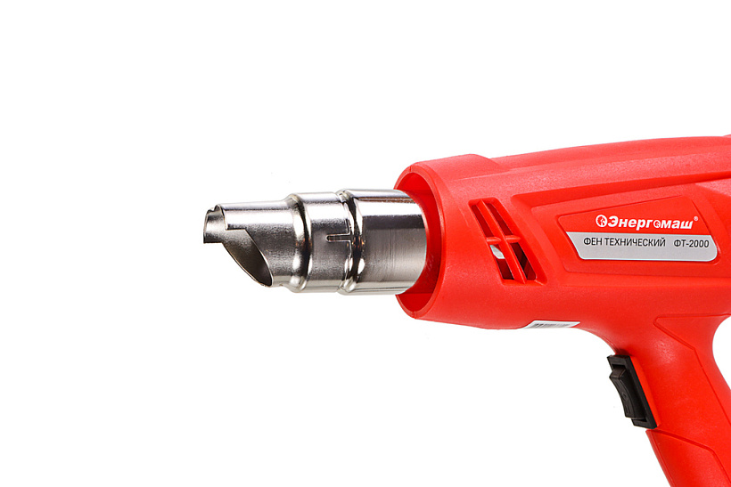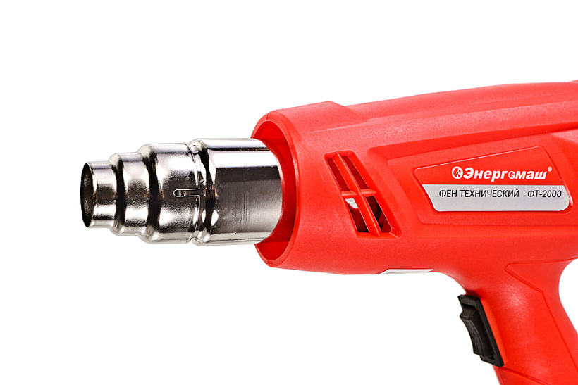 Энергомаш ФТ-2000 — надежный и простой в работе технический фен бытового назначения. Благодаря небольшой массе и компактным размерам модель обладает отличной маневренностью — уверенно контролируется и позволяет эффективное применение в условиях ограниченного пространства. Устройство может использоваться не только как мобильное, но и как стационарное — особая форма корпуса со специальной плоской основой дает возможность для большего удобства устанавливать фен в вертикальном положении. Инструмент имеет два рабочих температурных режима, которые совмещены с двумя скоростями воздушного потока: первый режим пониженной производительности обеспечивает максимальную температуру нагрева в 375°C при скорости выдува воздушного потока 300 л/мин, второй режим повышенной производительности — максимальная температура нагрева 495°C при скорости выдува воздушного потока 500 л/мин. Управление режимами происходит посредством специального переключателя. Для наиболее полного использования функционала в штатную комплектацию фена входят рефлекторное и редукционное сопла: рефлекторное сопло предназначено для разогрева пластиковых труб перед их изгибом в проектное положение в процессе монтажа, редукционное фокусирующее сопло применяется при точечной сварке, для герметизации стыков с помощью специальных наплавляемых лент, пайки медных труб и фитингов бесконтактным методом, при склеивании горячим способом любых материалов и в качестве переходника для фигурных или шлицевых насадок.