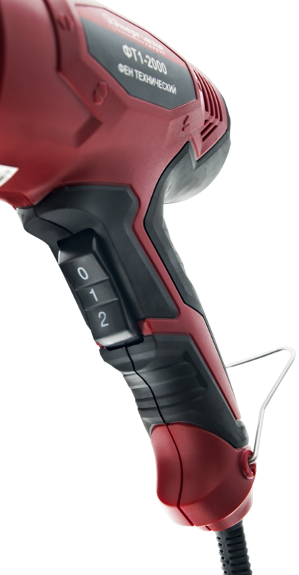 Для повышения качества работ температура воздушного потока удобно регулируется в двухступенчатом режиме с помощью легкодоступного выключателя.