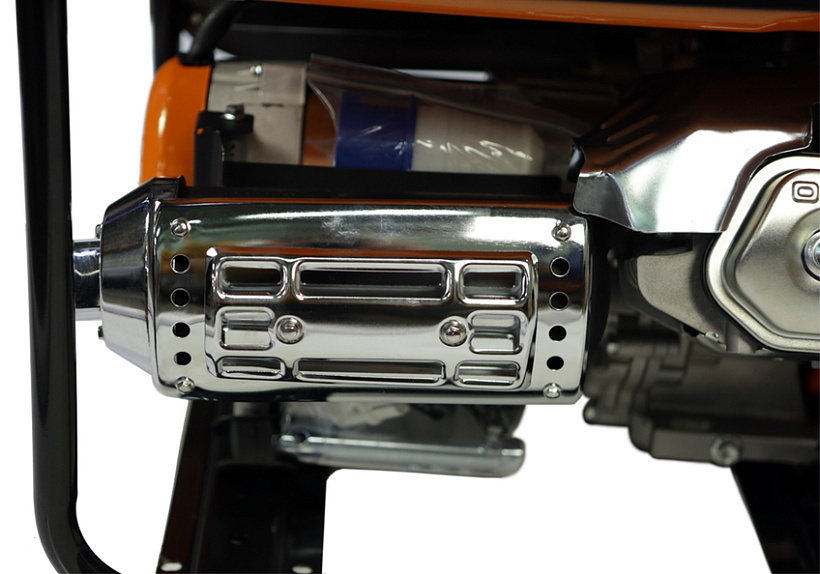 СОЮЗ ЭГС-6500Э – мощный универсальный однофазный бензиновый генератор для частного или производственного использования. Отлично подойдет для резервного электроснабжения загородного дома или организации удаленной рабочей площадки. Имеет классическую компоновку: двигатель и альтернатор смонтированы внутри прочной усиленной трубчатой рамы, страхующей узлы генератора, и бензобак от случайных повреждений, при транспортировке. Модель оснащается четырехтактным бензиновым двигателем 190F рабочим объемом 420 см3 с верхним расположением клапанов (OHV) и воздушным охлаждением. Благодаря ряду технических решений: коленчатому валу повышенной прочности, усиленной цилиндро-поршневой группе, чугунной гильзе цилиндра и ее алмазной хонинговке силовой агрегат надежен, и неприхотлив в использовании. Тип альтернатора – синхронный, с щеточно-коллекторным узлом. Синхронный альтернатор способен легко переносить индуктивные нагрузки и позволяет запитывать даже достаточно мощный строительный электроинструмент. За автоматическую стабилизацию выходного напряжения отвечает встроенная система AVR (Automatic Voltage Regulation). Для визуального контроля напряжения на панели размещен аналоговый вольтметр. Важная особенность модели СОЮЗ ЭГС-6500Э – система электрического запуска, за счет чего пуск бензогенератора максимально удобен и прост. В качестве альтернативы, можно задействовать и традиционный вариант запуска с помощью ручного стартера. Генератор имеет систему поддержания энергобезопасности, которая принудительно отключает агрегат при превышении допустимой нагрузки или коротком замыкании, а также оснащен системой аварийной остановки двигателя при критически низком уровне масла.