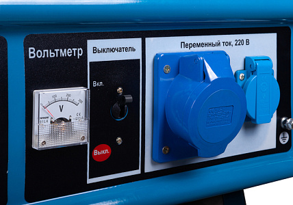 - Для визуального контроля напряжения на панели размещен аналоговый вольтметр.