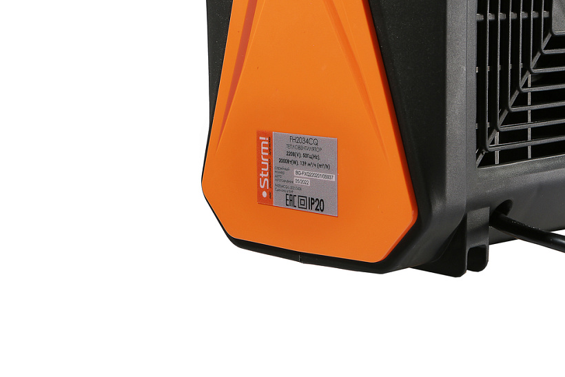 Sturm FH2034CQ — компактный и эргономичный тепловентилятор мощностью 2 кВт и с производительностью воздушного потока 139 м3/ч. Предназначен для быстрого прогрева и поддержания комфортной температуры в небольших помещениях площадью до 20 м2. Модель выполнена в современном, интерьерном дизайне, обладает небольшими габаритными размерами, и массой. Ключевая особенность тепловентилятора Sturm FH2034CQ — наличие в конструкции металлокерамического нагревательного элемента, за счет большой площади теплоотдающей поверхности которого гарантируется быстрый нагрев. Для того, чтобы ускорить циркуляцию нагретого воздуха в помещении, модель оснащена встроенным вентилятором. Управление устройством осуществляется парой регуляторов, расположенных на верхней панели. С помощью одного регулятора пользователь выбирает необходимый режим работы из предусмотренных трех: вентиляция без нагрева / теплый обдув / горячий обдув. Назначение второго регулятора — управление настройкой термостата. Визуальному контролю включенного устройства способствует отдельный индикатор питания, размещенный на панели управления. Прибор оснащен защитой от перегрева, а также имеет специальный датчик опрокидывания, отключающий питание в случае падения. Для удобства перемещения тепловентилятора с места на место, предусмотрена прочная рукоять.