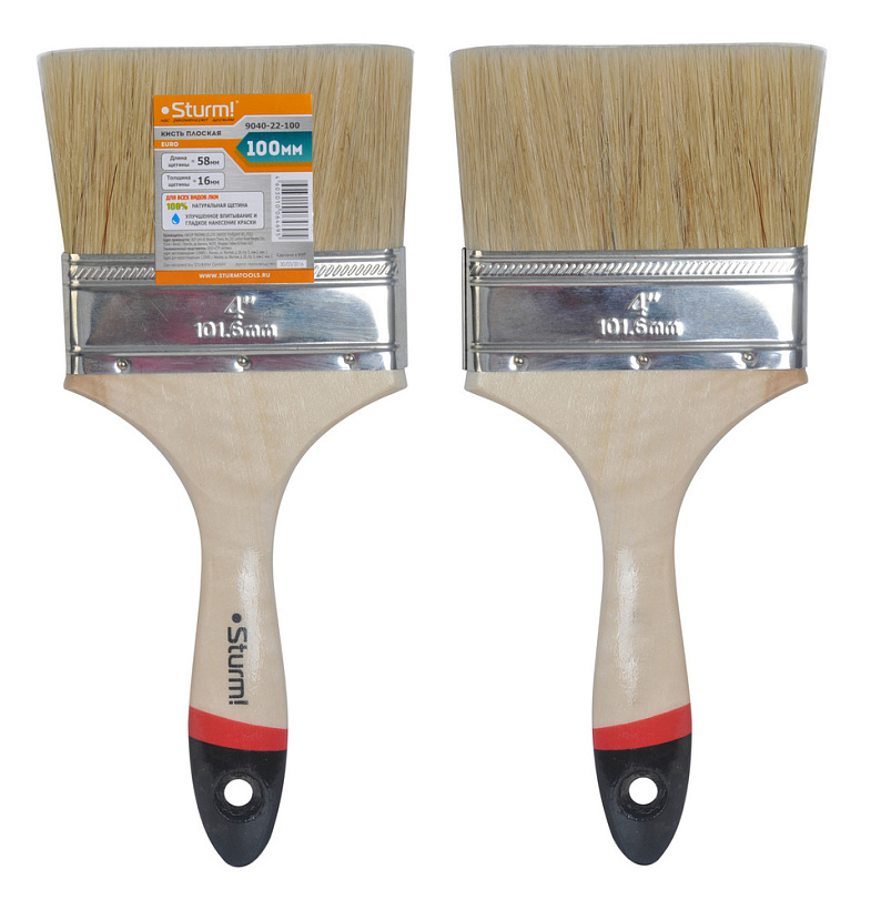Кисть плоская "Euro" 4" (100 мм), натуральная щетина Sturm!