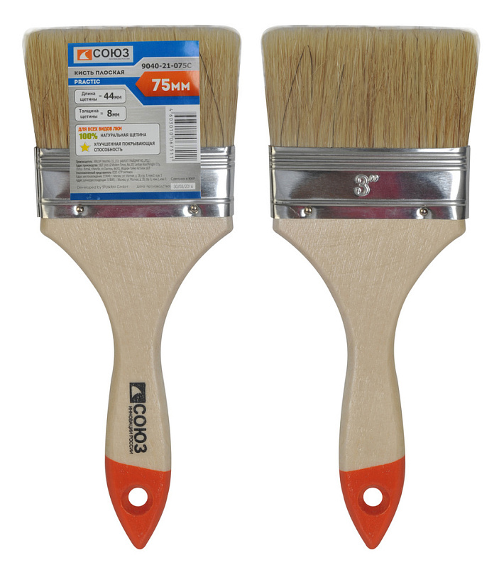 Кисть плоская "Практик" 3" (75 мм), натуральная щетина СОЮЗ