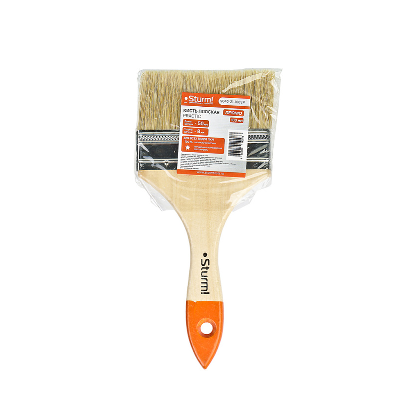 Кисть плоская "Практик" 4" (100 мм), натуральная щетина Sturm! PROMO