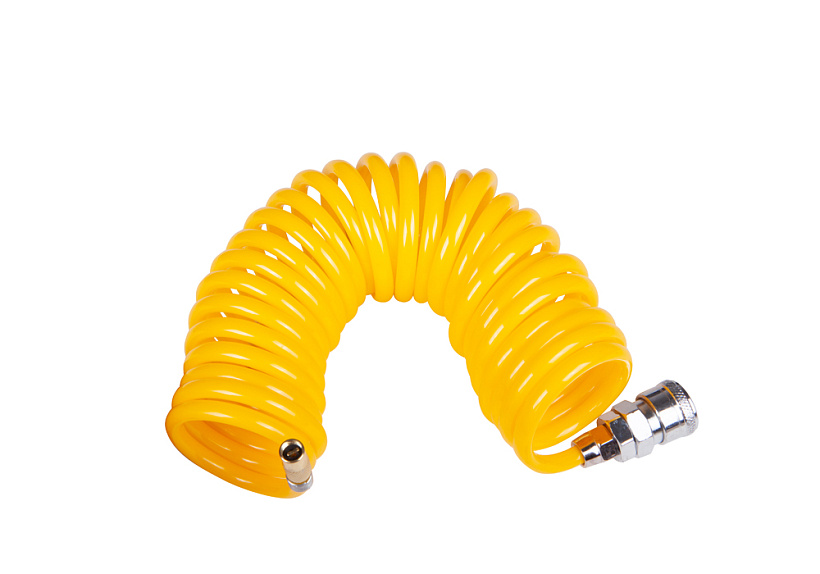 В комплект входит витой шланг с универсальными штуцерами, длина которого позволяет накачать все колеса автомобиля без переустановки прибора.