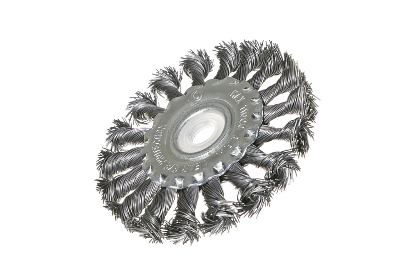 Корщетка-насадка является сменным элементом для УШМ. Щетка применяется для шлифовки, полирования, зачистки от лака, краски и коррозии различных поверхностей и изделий. Рабочая часть состоит из скрученной в пучки стальной проволоки. Специальная форма щетки в виде диска и упругие плетеные пучки позволяют работать в труднодоступных местах.